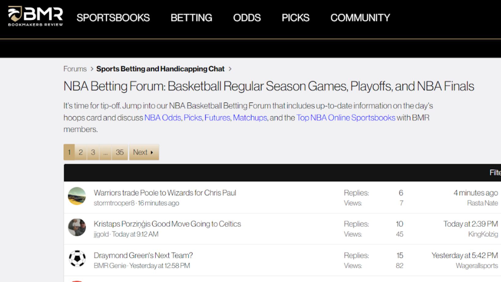 Sports betting on the NBA is just one of many topics for debate on the SportsBook Review Forum. NBA bettors may connect with a community of knowledgeable handicappers and fervent supporters by joining the SportsBook Review Forum.
