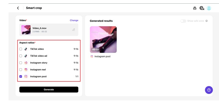 Don’t forget: Pippit’s ad maker gives you the flexibility to preview your content in all major aspect ratios before finalizing, so you’re not guessing what will fit best.