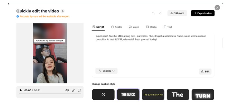 Pippit’s free online video language translator lets you match translated subtitles with voice and avatar tone—so the styling aligns with what’s being felt, not just what’s being said.